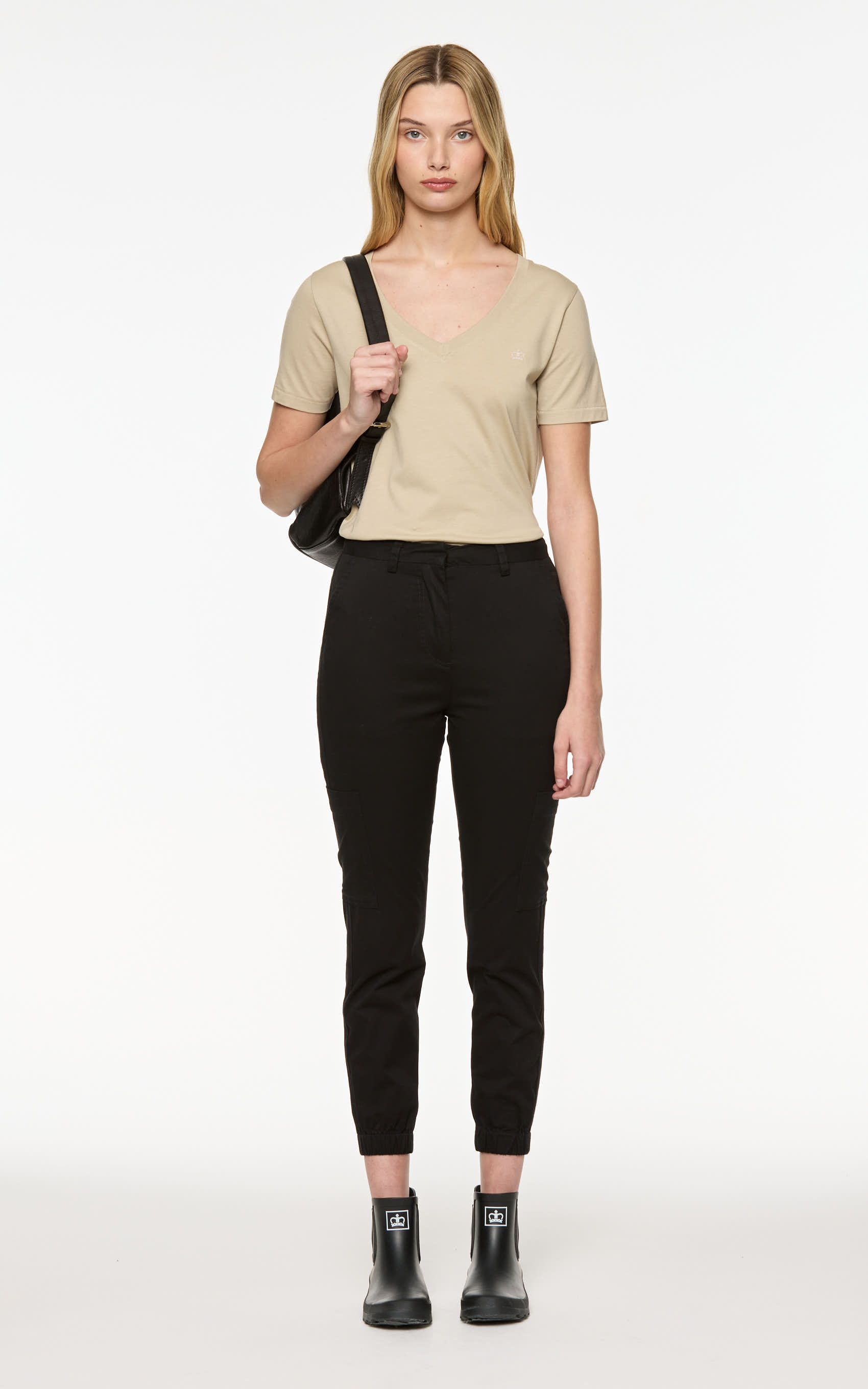Camisa amplia de algodón, cartera a la vista con botones personalizado. Hombro caído, manga larga con presilla y botón para arremangar. Ruedos redondeados. Lleva corona bordada a tono. TELA DIFERENCIADA.