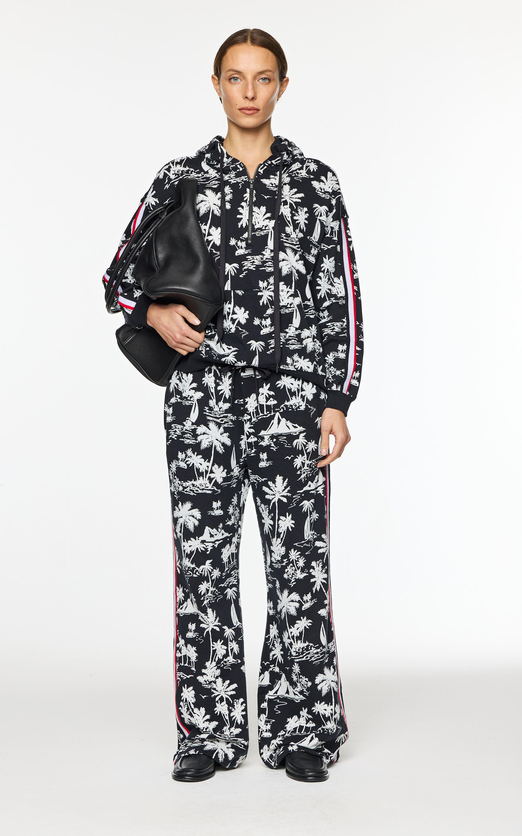Remera polo rayada a dos colores, con cuello y cartera en tela plana, largo por arriba de la cadera, tajos laterales y manga corta. Lleva una corona con relieve en el delantero. Producto fabricado en Perú.