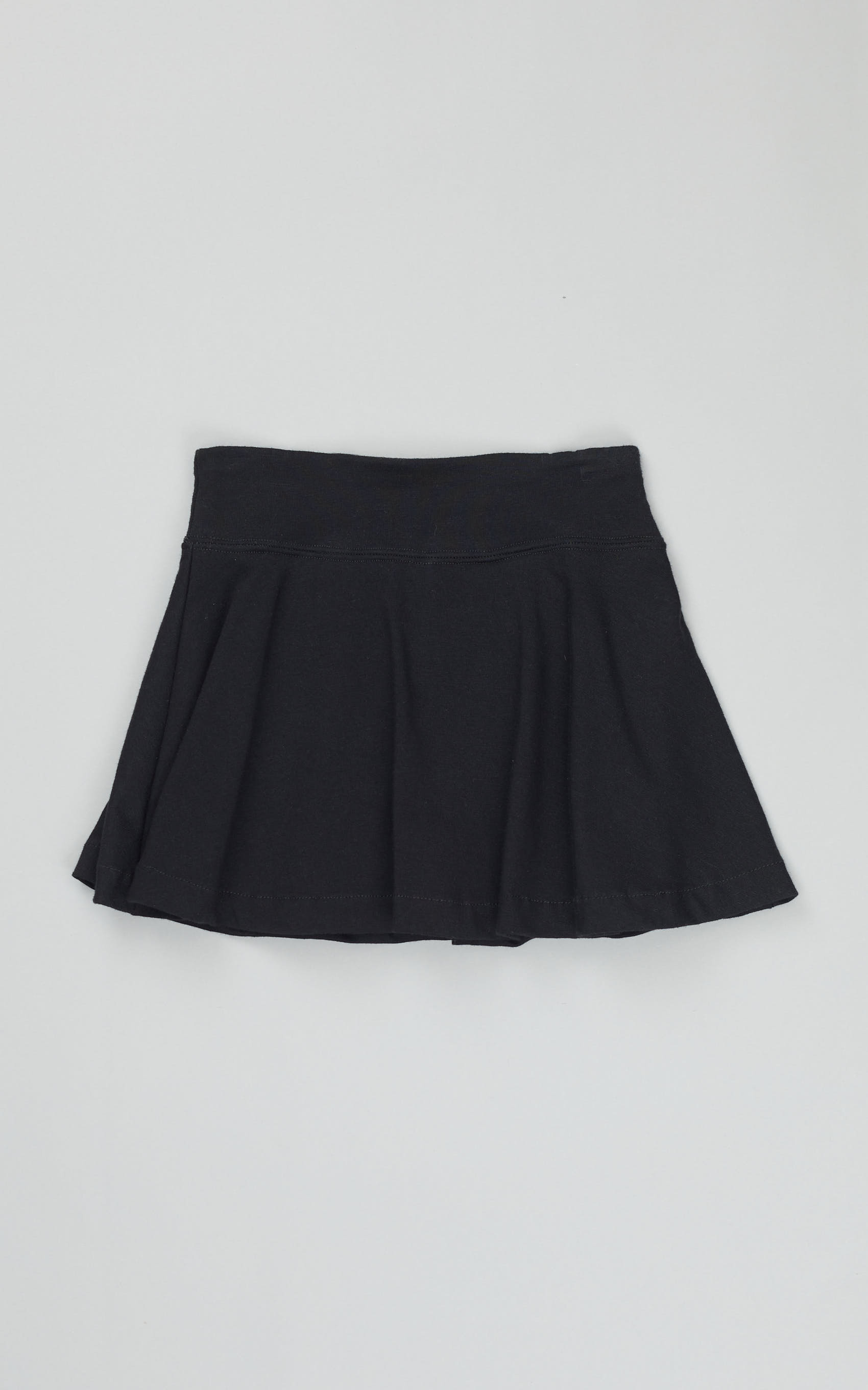 Falda corta con short interno ceñido al cuerpo en jersey de algodón elastizado. tiro alto y cintura ancha de buen ajuste . posee badana marcaria de goma centrada en cintura de espalda. bordado corona marcario a tono en delantero.